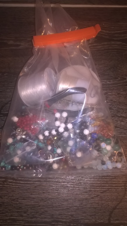 есть и натуральные камни и имитации, небольшое кол-во железа, спандекс, ювелирный тросик и круглогубцы