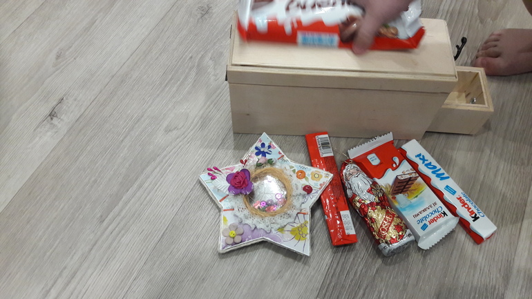 Игра "Раздача слоненят" (Украина)Вот какого замечательного Слоника я выиграла . Он приехал от замечательного и творческого человека- Нюты.Пыталась сфотографировать быстро, пока не съели вкусняшки. Не удалось. Слоник приехал с волшебной звездой, повесим ее на елочку. Так же мой хомяк пищал от радости,потому что я обожаю всякие коробочки и шкатулочки. В этой буду хранить металлические подвески,наверное. А дети были рады сладостям. Меньший все таки успел цапнуть вкусняшку пока я фоткала. А вот и содержимое посылки
