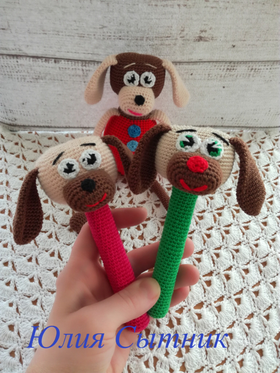 Погремушки-собачки для малышей на деревянной рукоятке связаны по мастер-классу Екатерины,а потом остановиться уже было невозможно. Под кат много фото...