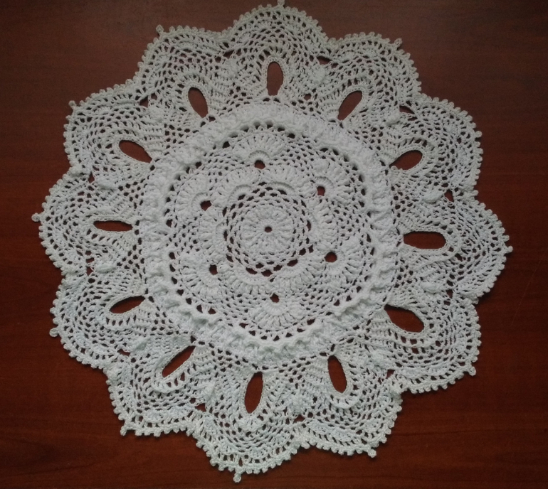 Диаметр салфетки 35 см, нитки из остатков (середина Сосо, а лепестки не знаю из какой пряжи), крючок 1,25.