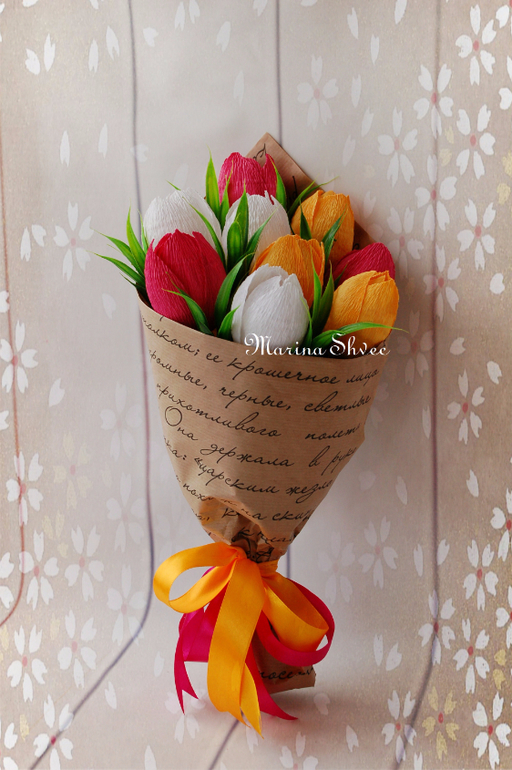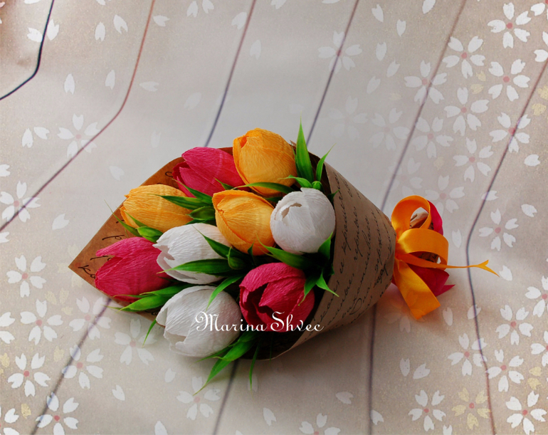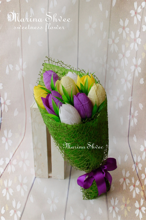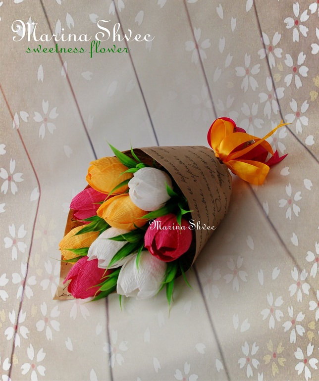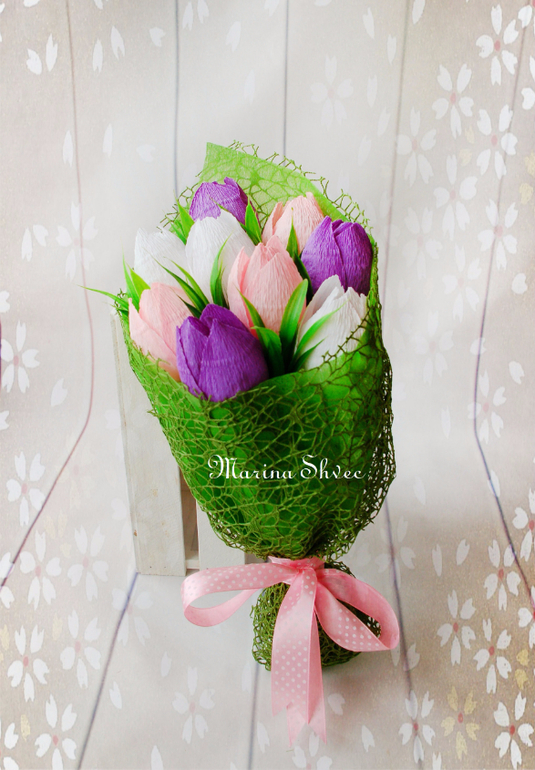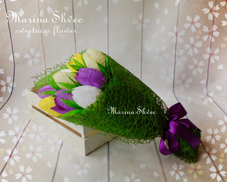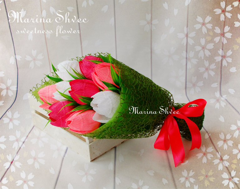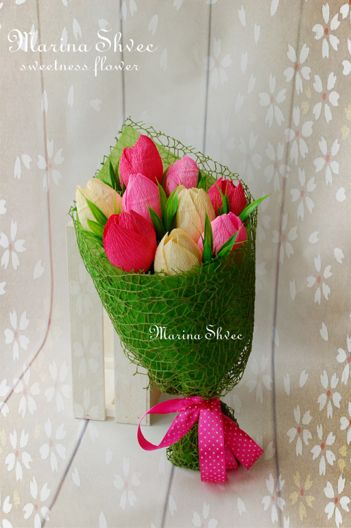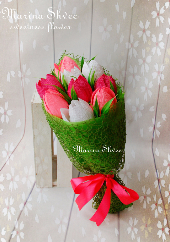 Марина, как всегда СУПЕР!!! В основе тюльпанов конфеты ферреро роше? А я сейчас хочу попробовать сделать букетик в кружечке, позаимствовать твою идею двухлетней давности. Но я тебя как автора и вдохновителя обязательно укажу)))