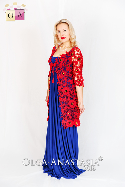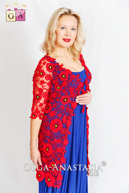 Вязание крючком (РАБОТЫ И СХЕМЫ)Ирландское кружево. Авторская ручная работа- Кардиган Поле с маками.