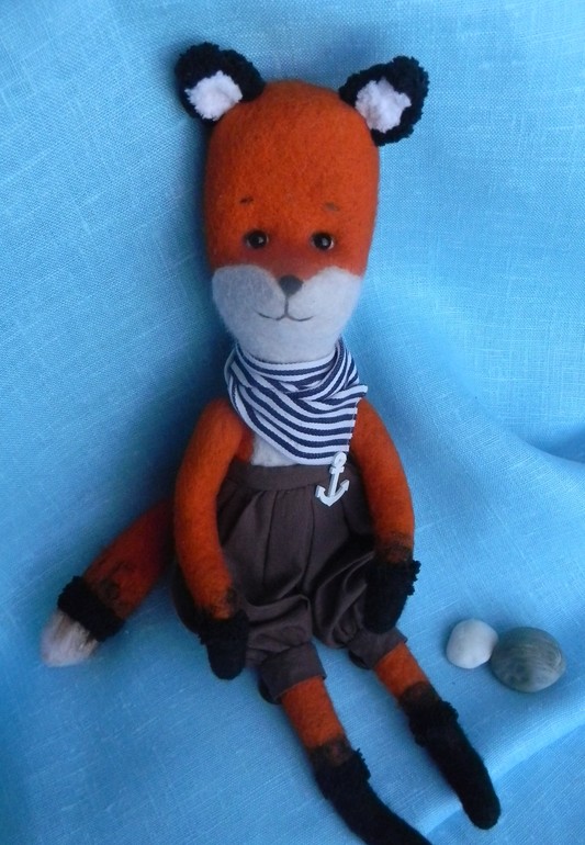 Игрушечный мир - животныеЗдравствуйте!! Хочу вам показать лисенка Максика, который был сделан по обучающему курсу, выполнен в смешанной технике валяния из шерсти. Получился мечтательным, а мечтает он стать моряком)