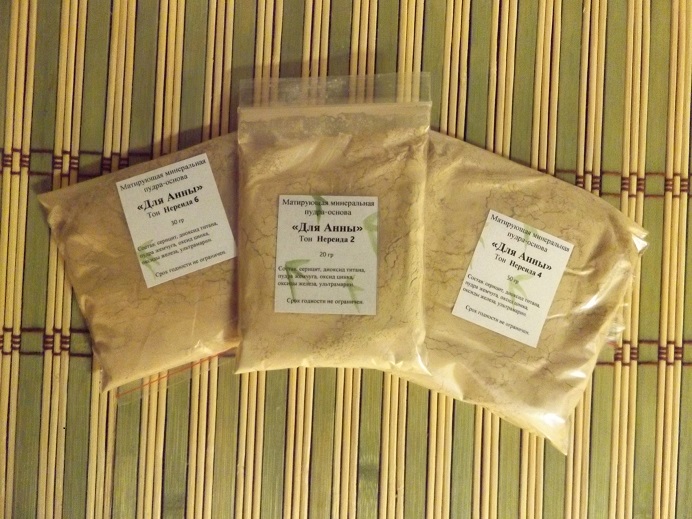 Состав 100% минеральный: слюда, диоксид титана, оксиды железа, ультрамарин. Добавки для усиления увлажняющего и противовоспалительного действия пудры: пудра жемчуга, оксид цинка.