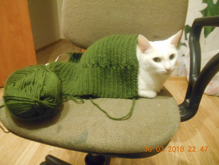 Получился очень теплый.Ну и из той же пряжи,только цвета оливы,шапка сыну.
