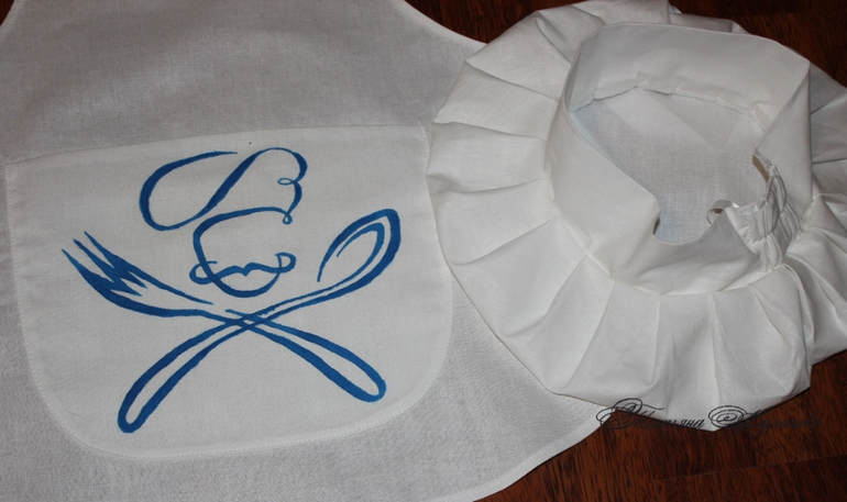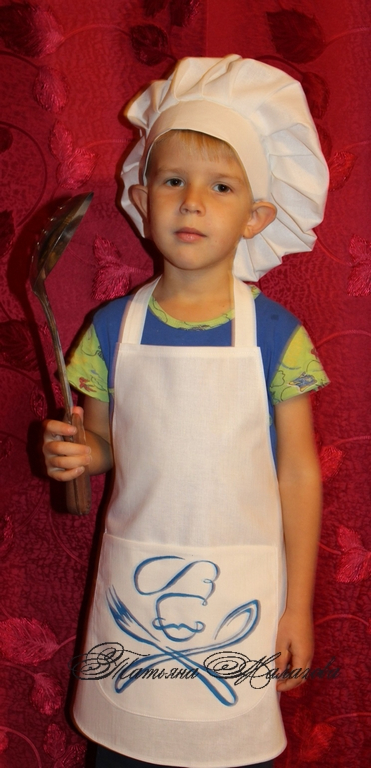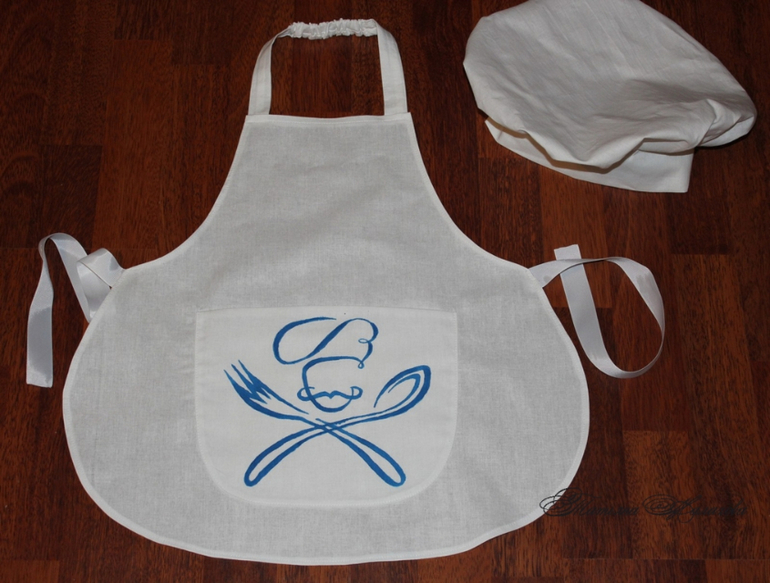Костюм повара. Рисунок на фартуке акриловыми красками по ткани. Бязь.