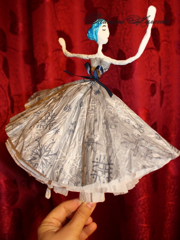 Балеринка для младшей в садик. Папье-маше на проволочный каркас, платье - салфетки.