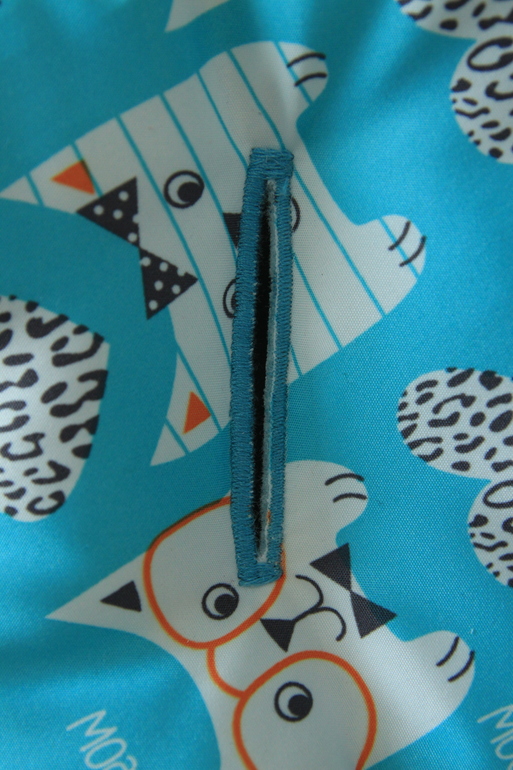 3. Чехол на стульчик для кормления Brevi B Fun. Принтованная плащёвая ткань с водонепроницаемым полимерным покрытием внутри, наполнитель - холлофайбер плотностью 500 гр., все прорези под ремни и отстрочки выполнены, жёсткие пластиковые вставки в нижней части чехла и в боковинках присутствуют. Поперечная пластиковая вставка съёмная.
