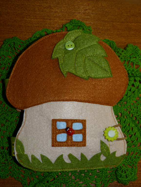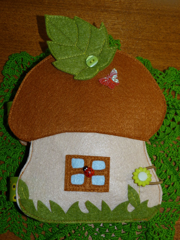 ФетрГотова очередная игровая мини - книжечка. На этот раз в грибочке живёт девочка- ежиха. Всё , что нужно для комфорта есть, мягонькая кроватка, шкаф со сменными платьями, игровая, кухня, столовая, а на задней части - сад. Каждое утро ежонок поливает из лейки цветы и клубнику. Сшита книжечка из фетра, высота 18 см., ширина - 15 см., упакована в сумочку. Подробности и много фото, более 5, под катом.