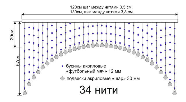 Инструкция - Шторы из бусин полукругом в проем 120-130 см.