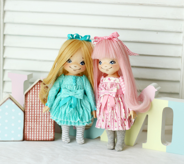 Девочки-малышки. Ростик 22 см. Сшиты из хлопка. Ручки леплю из полимерной глины