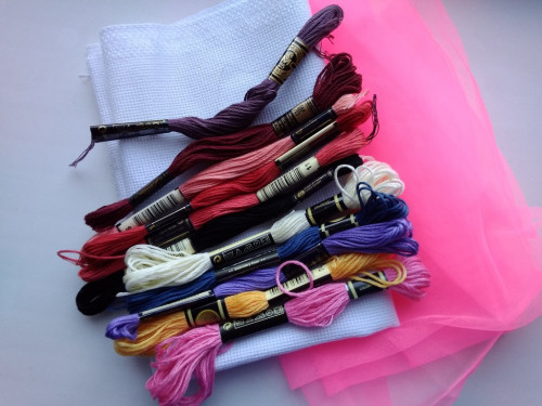 Слоник "Яркий вышивальный" : Канва, мягкий фатин и мулине!