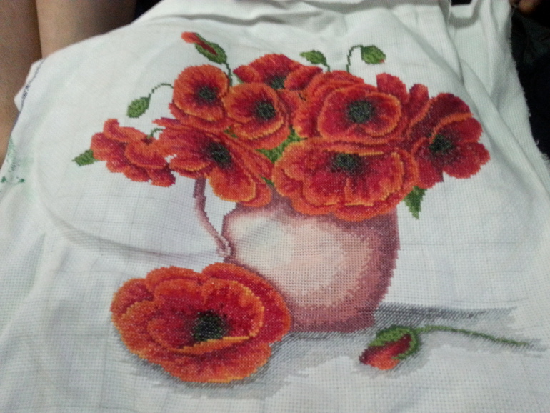 Вышивка картин. Крестиком, гладью, бисером, стразами, лентами, схемы по вышивкам, процессыПрочитала подруга где-то что для того чтобы ей выйти замуж должен кто-то ее хорошо знающий вышить для нее маки, и на эту идею она решила подбить меня. И вот что из этого получилось