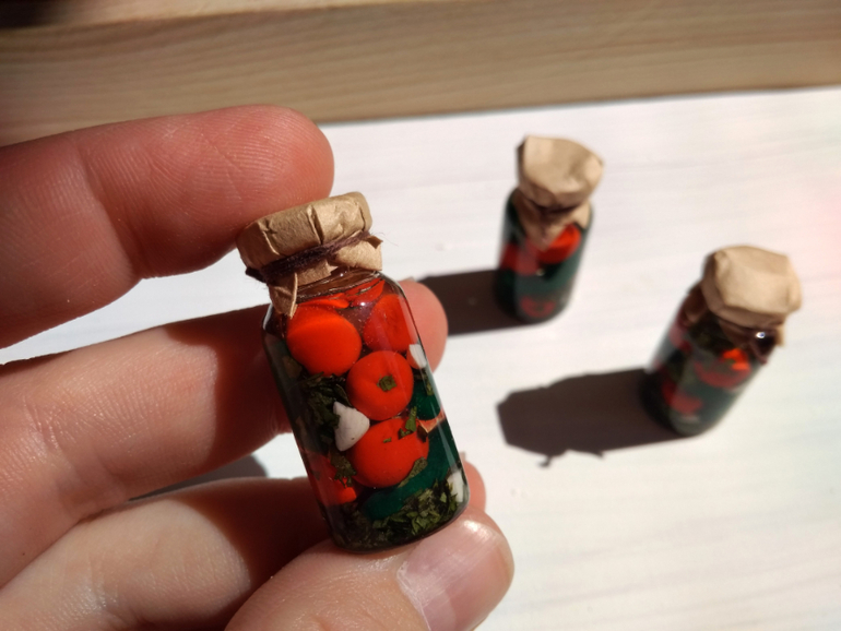 Лепка из пластики (полимерная глина) (ТОЛЬКО ГОТОВЫЕ РАБОТЫ)Миниатюра это болезнь))) Благодаря ней постигаю новые виды творчества. Вот попробовала себя в лепке из полимерной глины. Захотелось мне консервации для моих миниатюр) Результатом очень довольна!
