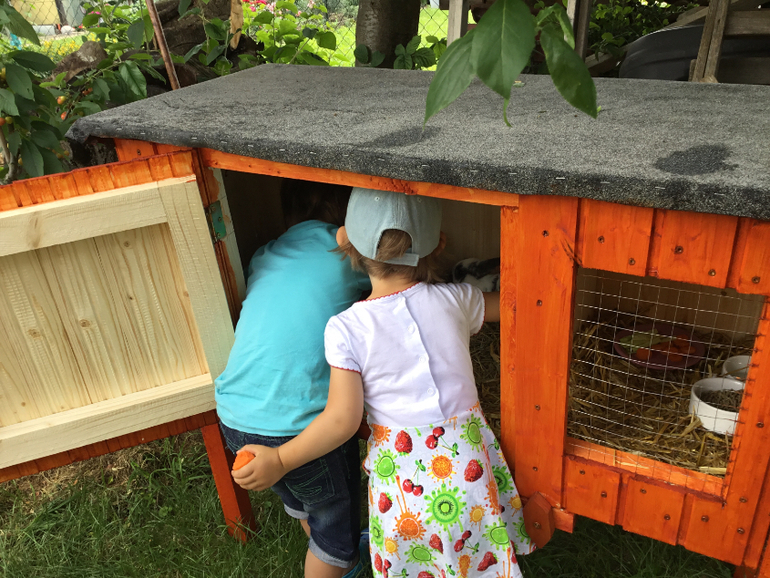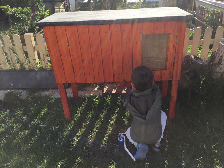 Работа с деревомМуж постарался , сколотил, я покрасила. Для двух новых питомцев, соседи подарили приплод -пару кролят, нашим детям для забавы!