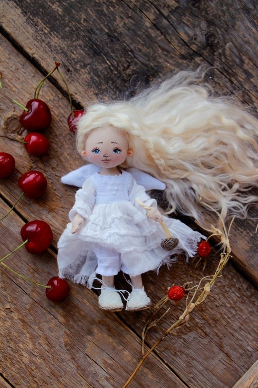 Кукольный мир - человекоподобные куклыДоброго денечка..я к вам с ангелочком...Малышка ростиком 15 см..Шарнирные ножки, сидит самостоятельно..забавно.) Платьице и обувка снимаются. Всё ручная работа.