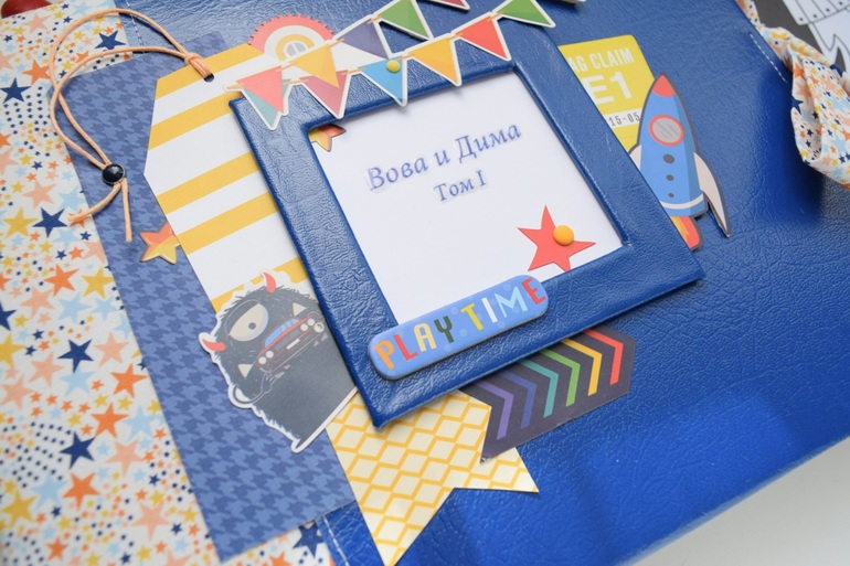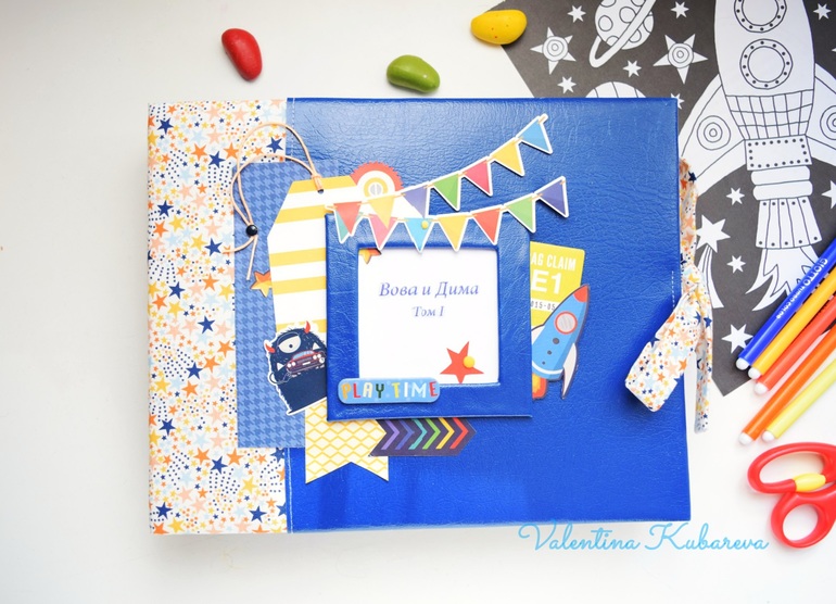 Второй альбом делала для подруги. Странички она выбрала космические, сине-голубо-желтая палитра. Получилась такая обложка: