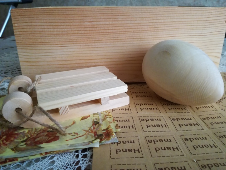 Ко мне приехал вместительный ящичек, трогательные саночки, крупное яйцо для декупажа, а ещё наклейки и декупажные карты!!!