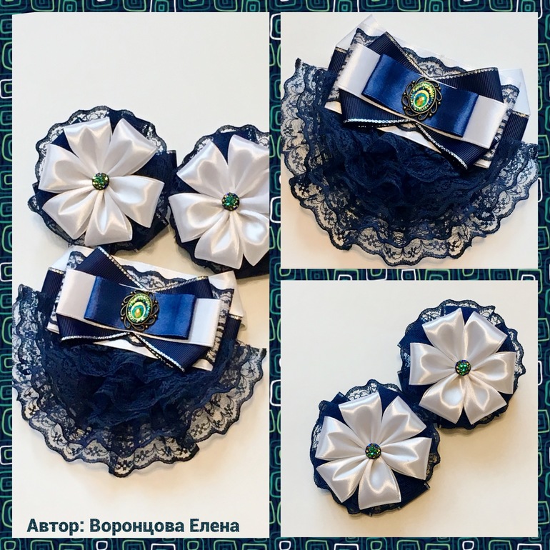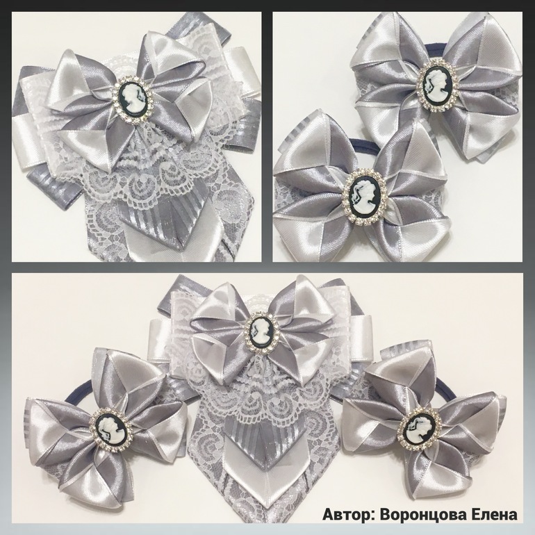 Цветы из ткани и форма. Канзаши. Украшения для волос.До школы осталось совсем немного... Вот такие комплекты у меня получились для торжественных линеек и мероприятий.