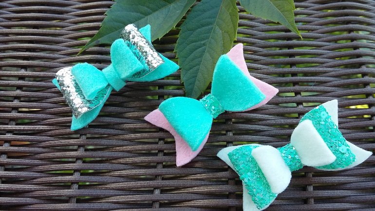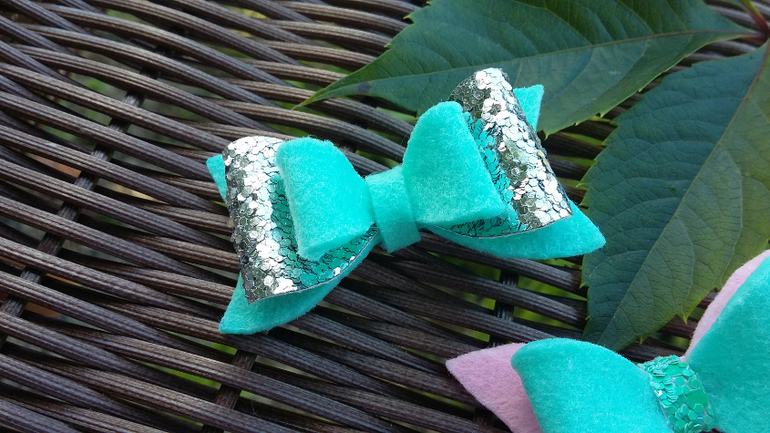 Блестящие бантики из эко-кожи.