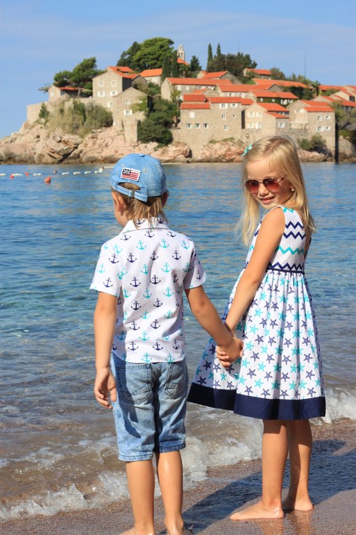 Себе тоже сшила платье из американского хлопка, очень мне понравился принт, в нем есть все, что я люблю - сочетание синего с белым, полоска, корабли...Хотя изначально задумывала совсем другой фасон, отрезное по линии талии, в складку, а Полинке платье-трапецию, но 2-х метров оказалось очень мало, пришлось переиграть, чтобы дочку не обидеть, ей сошью на следующий год, я не сторонница таких явно одинаковых вещей на мне и дочке. Фото только такие, остальные еще хуже 😅