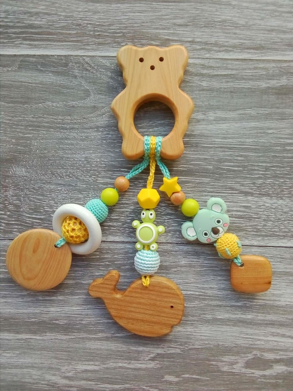 Бижутерия для слингомам. Слингобусы. Грызунки.Всего 34 года а моему внучатому племяннику уже годик. Вот связала для него грызунок. Ароматный Крымский можжевельник, силиконовые детали, вязаные бусины, как говорится "то что доктор прописал" )))