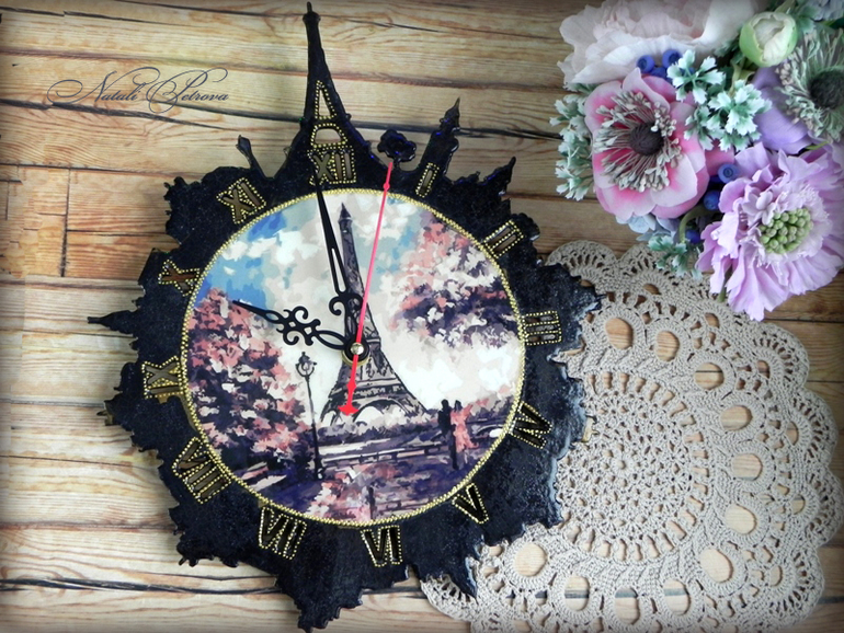 ДекупажПравильно говорят, что никогда не нужно зарекаться. Обещала больше не делать подобных часов, но не вышло. Две заготовки в моих закромах нашлись. Одни сделала для моей подруги Тани Колесниковой, но они полная копия предыдущих, поэтому не показываю. Эти немного в другой цветовой гамме. И больше я к ним точно не вернусь просто потому, что заготовок таких в моей городе не продают, а заказывать из другого не хочу. И так склад всего уже, можно самой магазин открывать.