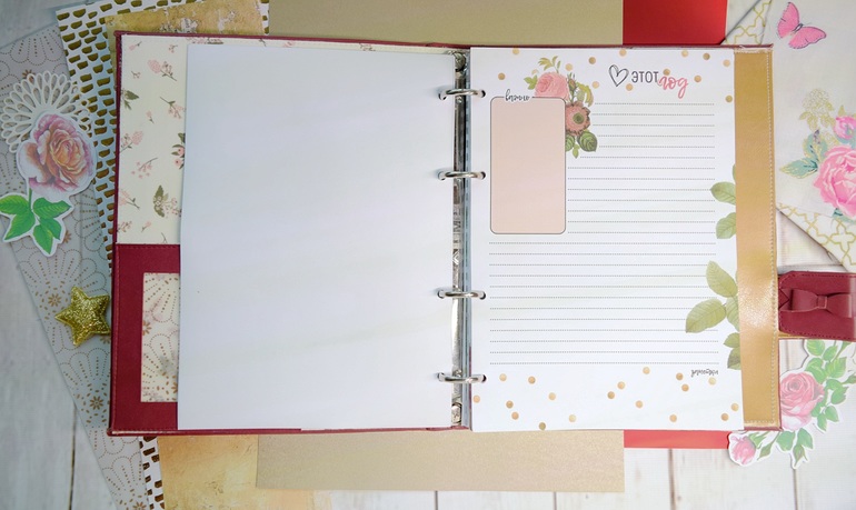 Внутри тканевые форзацы, кольцевой механизм и мегакрутые страницы.