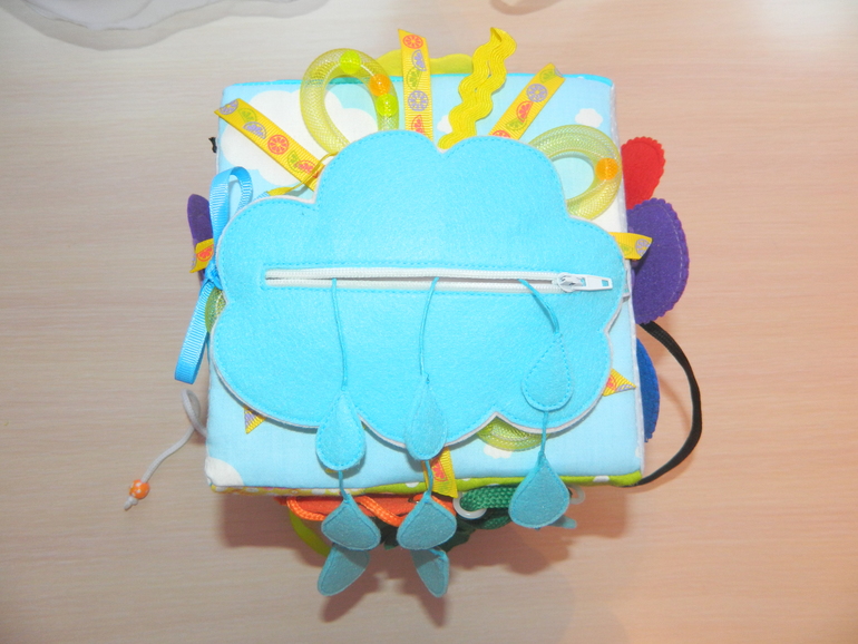 5 грань - Тучка с солнышком (в тучке прячется дождик, изучаем застежку молния, как открывать, закрывать крышечку, внутри прячется мишка);