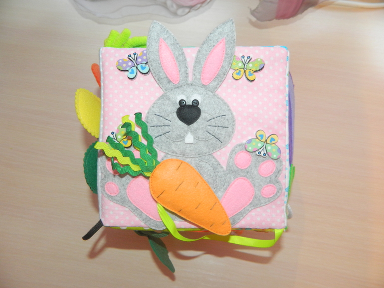 3 грань - Зайчик с морковкой (морковка на липучке, бабочки - перетяжки)(по выкройке Юлии Романчук);