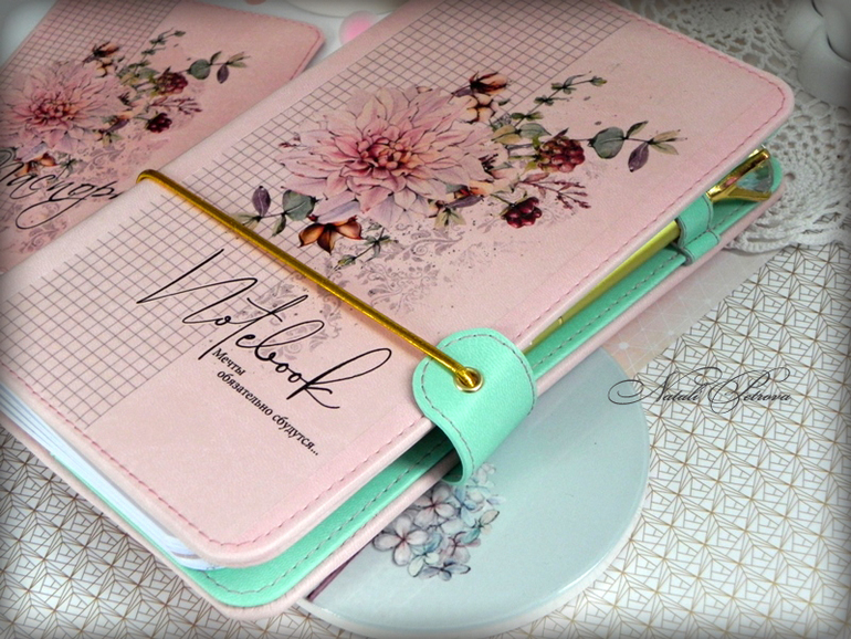 Размер обложки 21х12х3см, содержит два больших и один маленький карман, тетради 21х10см 20 листов+обложка. Внешняя часть и кармашки - переплетный кожзам, внутри отделан 100% хлопком.