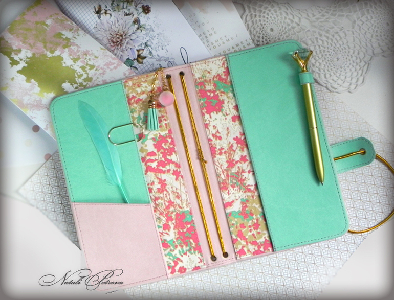 СкрапбукингСотворился у меня комплект из обложки для паспорта и блокнота в стиле "Мидори" с тремя сменными тетрадками.