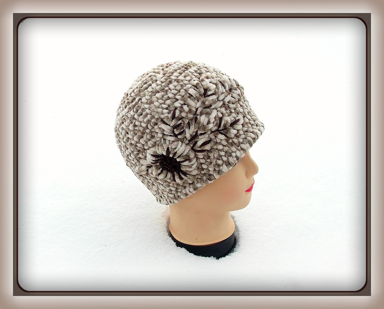 Вязание крючком (РАБОТЫ И СХЕМЫ)Попробовала связать шапочку из плюшевой пряжи и вышить ею же рисунок. Вот, что получилось)