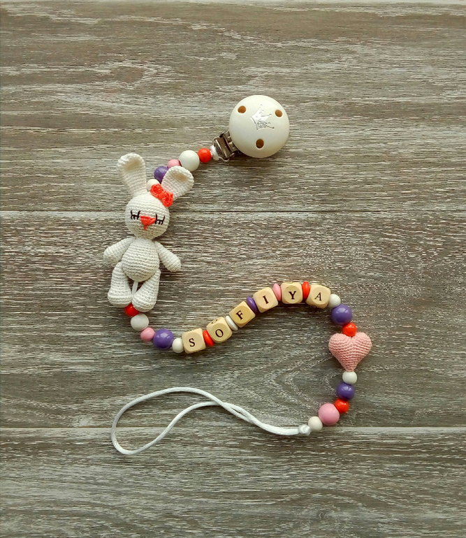 Бижутерия для слингомам. Слингобусы. Грызунки.О да... этот держатель был практически выстрадан... Когда все детальки зайца были уже готовы, сердечко почти полностью связано, и впереди был самый любимый этап - сборка держателя, моя дочка, прищемила мне палец дверью. Вернее она его прибила, да так что я четыре дня не могла подступиться к крючку и игле... Скажу вам это сродни издевательства.