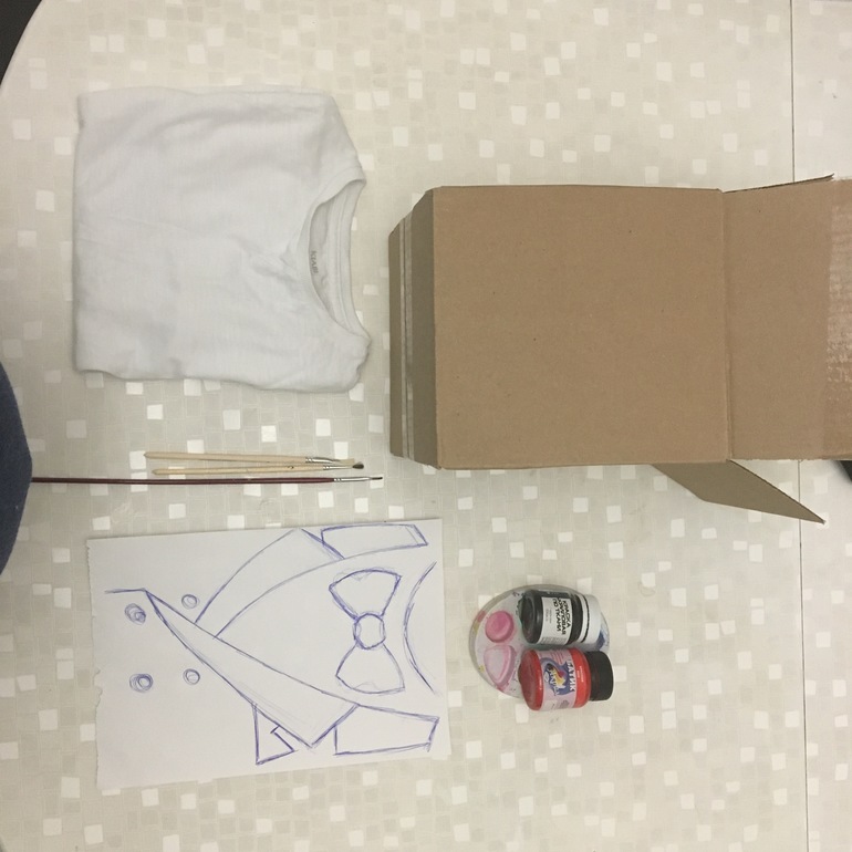 Футболка, кисточки (я как то обошлась одной), краска по Ткани нужного цвета, плотный картон, рисунок