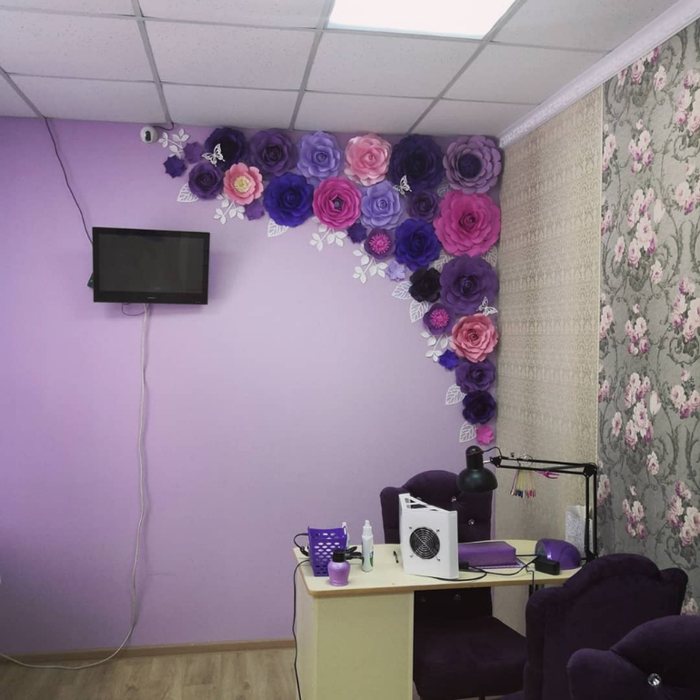 Эта большая композиция в шикарных оттенках сирени была создана для салона ногтевого сервиса.