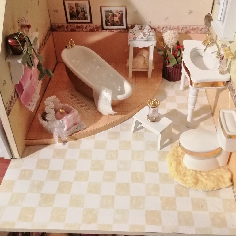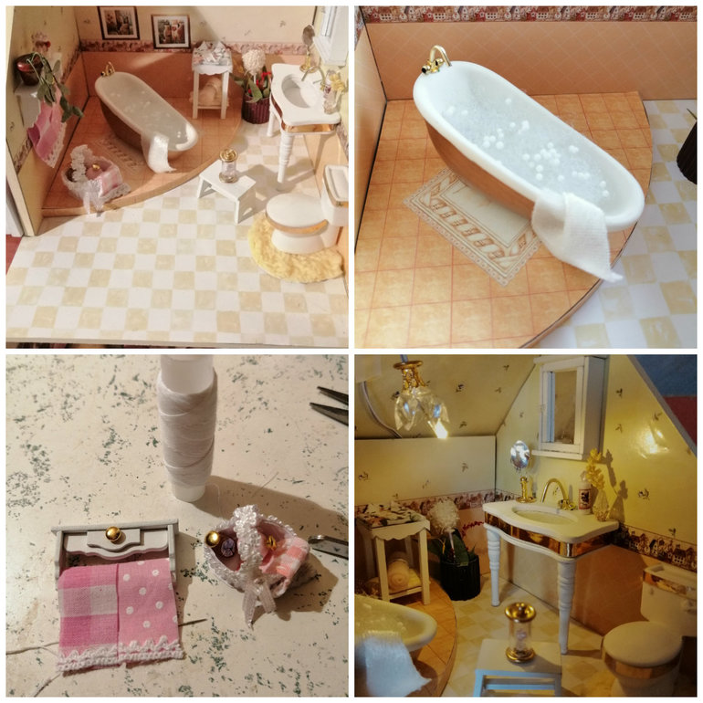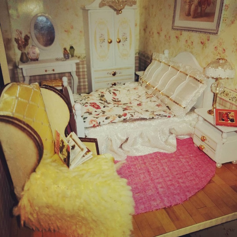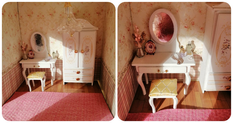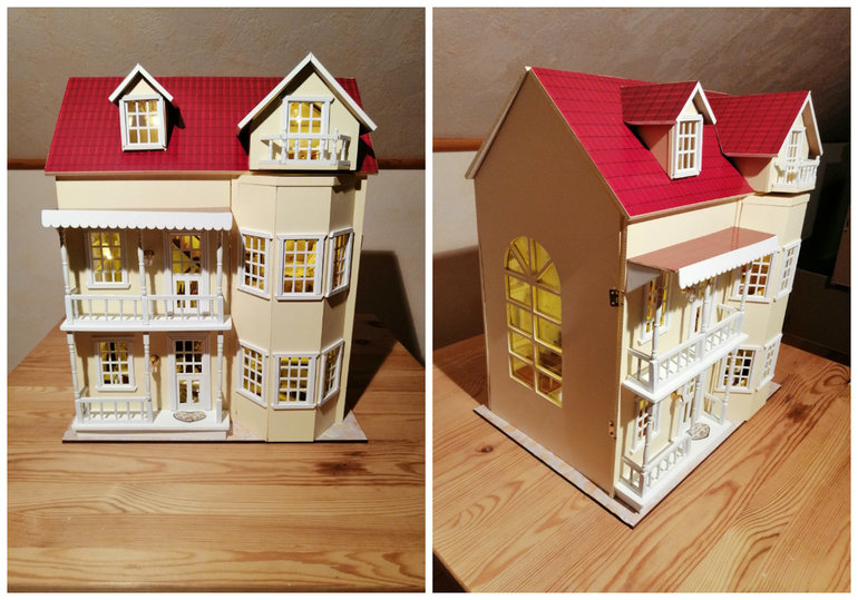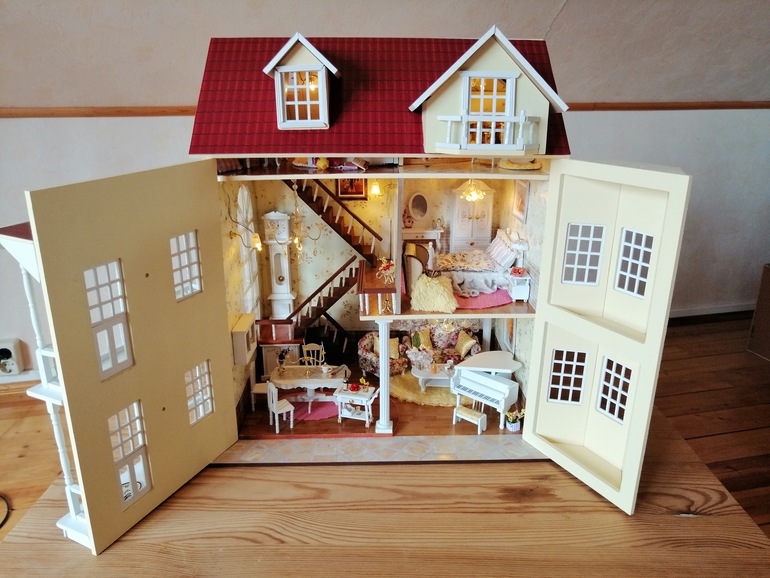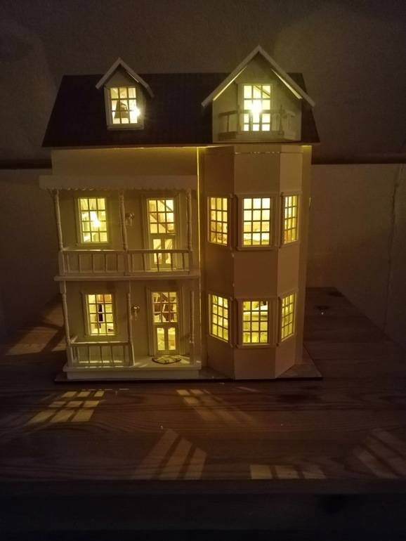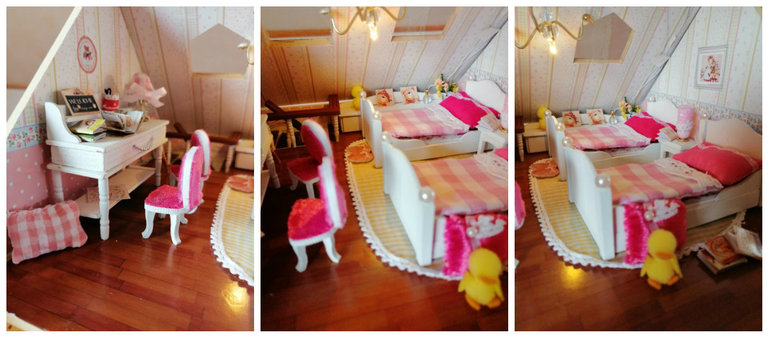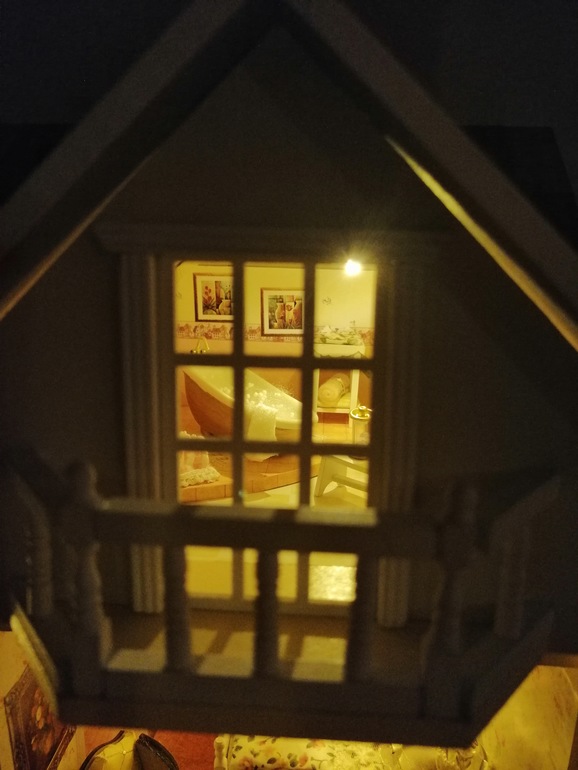 Куда убрать провода в детской 3 этажа, пока не придумала. Крыша же с покатом, а вторая часть открывается.....пробовала под обои, не выходит. Но то, что есть над чем работать очень радует) Пока пусть будет так, пока я жду, что меня осенит, как сделать короб для проводов 1:16