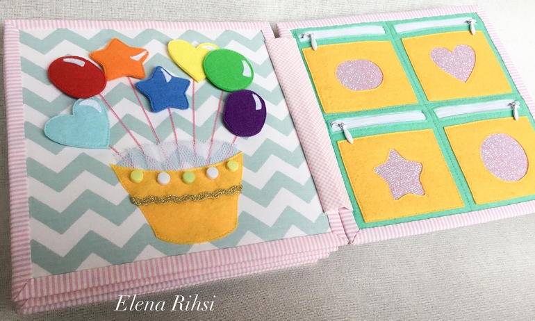 В книжке много развивающих элементов для развития мелкой моторики, а именно- приливные пуговицы, липучка, магнитные кнопки, перетяжки.