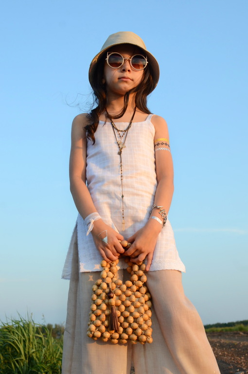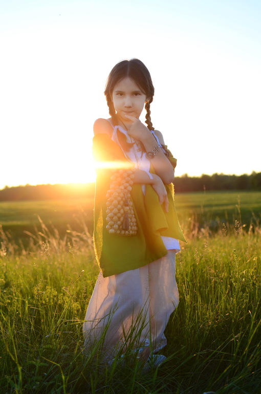 Расскажу в чем идея. Я люблю бохо стиль, этно и все в этом направлении. Давно хотела сделать коллекцию детских нарядов в этой стилистике, добавив башкирские узоры и колористику. Образ современной башкирской девочки, которая помнит свои корни и чтит свою культуру. Но в то же время умело пользуется современными мировыми трендами в моде))))