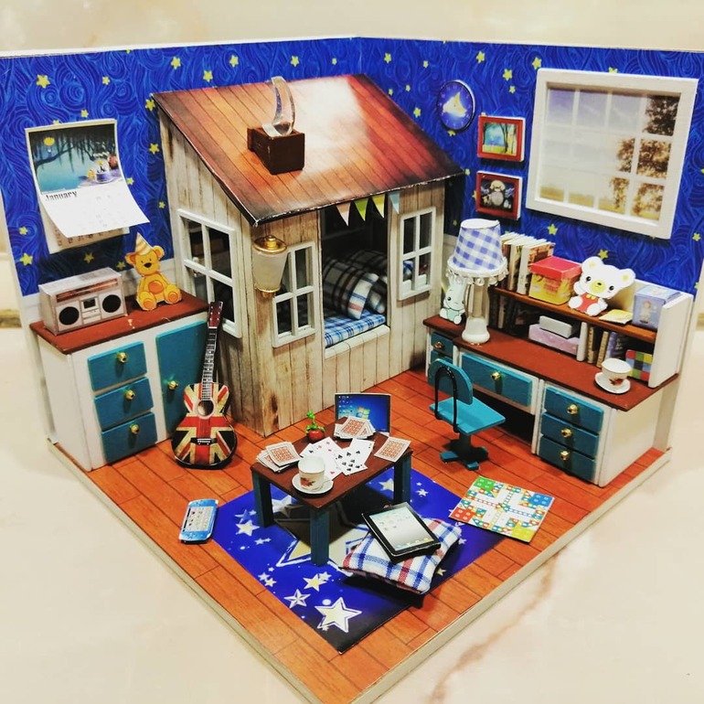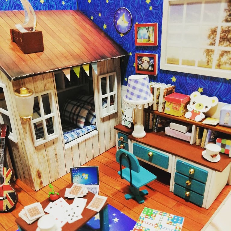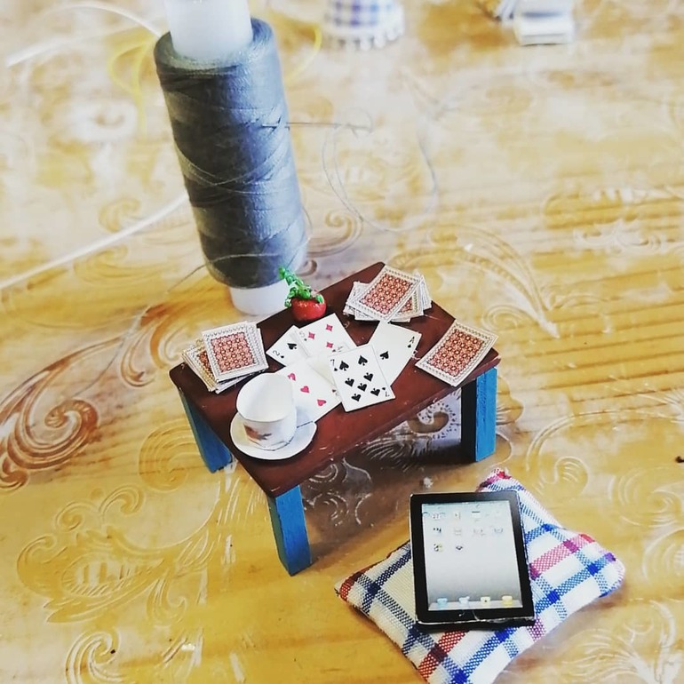 Смотрю Ваши работы и восхищаюсь и всегда понимала, что это всё крошечное, но как-то не до конца понимала). А вот после фото с катушкой ниток я поняла реальные размеры и кропотливость. Очень красиво и уютно, хочется за край фото заглянуть, чтобы хозяина детской увидеть. Восхищена Вами и работами, мне так всегда мечтала иметь немножко усидчивости)).