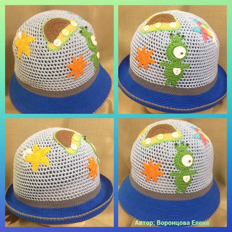 Панама «Пришелец». ОГ 52-54см. Пряжа Сосо (хлопок), крючок 1,75; 1,5; 1,25