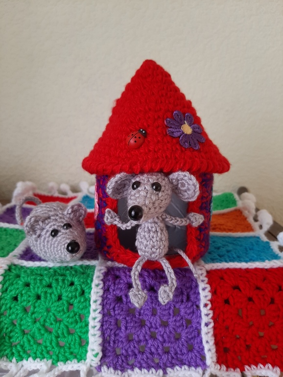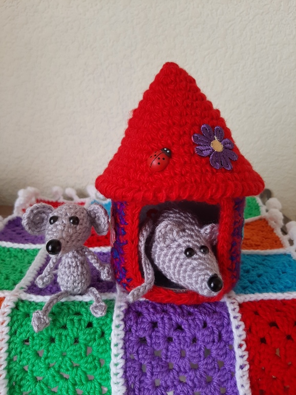 Амигуруми (вязаные игрушки)Пока в нем живет только мышка-домушка. Но с каждым годом прибавится еще 11 зверюшек.