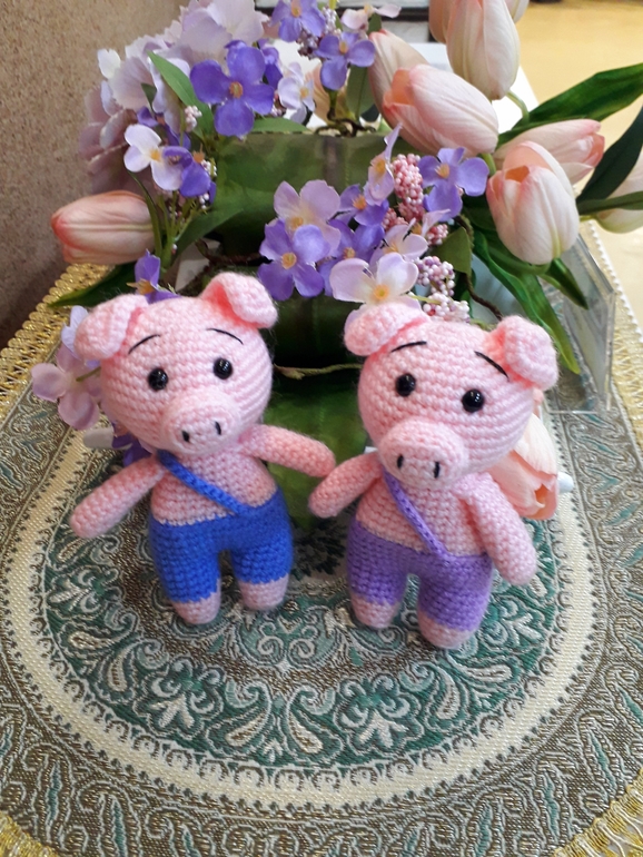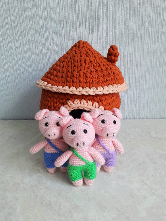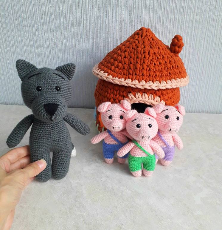 Амигуруми (вязаные игрушки)Хотите сделать ребенка счастливым - подарите ему игрушку. Хотите сделать его счастливее вдвойне - подарите ему 2 игрушки. Хотите, чтобы он был бесконечно счастлив - подарите ему целую сказку. Наверное, именно так подумала одна мама, заказав мне сказку "3 поросенка". И не прогадала! Её дочка теперь везде таскает этих поросят. Счастлива и она, и мама, и я.