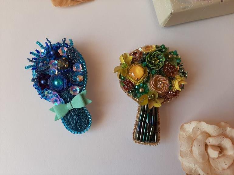Когда домашние дома лично мне сложно заниматься творчеством) Удалось сотворить несколько брошей.