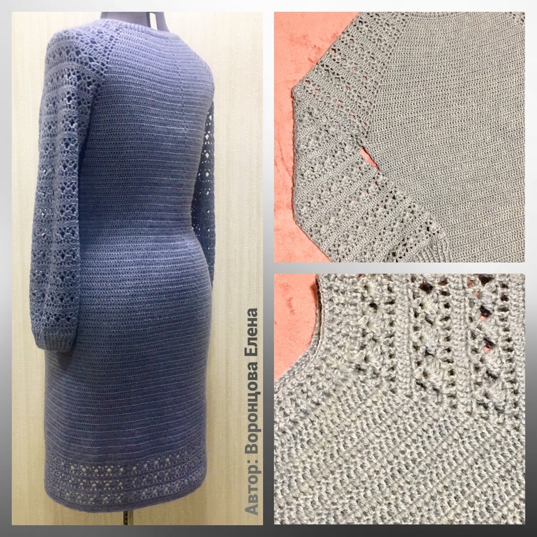 Платье связано регланом. Схему ажурной части прилагаю.