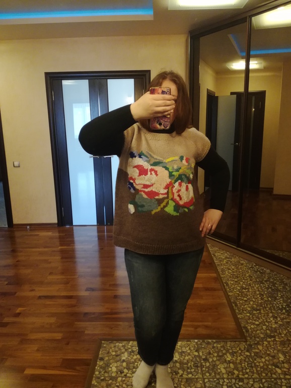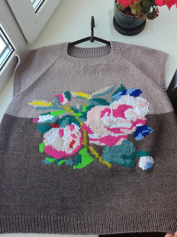 Но только мне нужна была жилетка, а не свитер, но непременно с такими цветами, Поэтому вот, что вышло