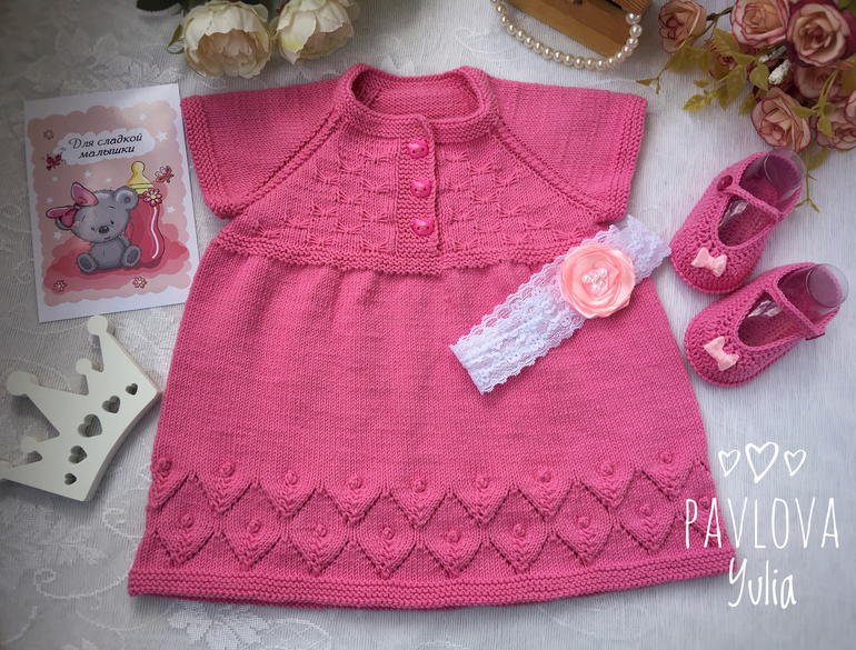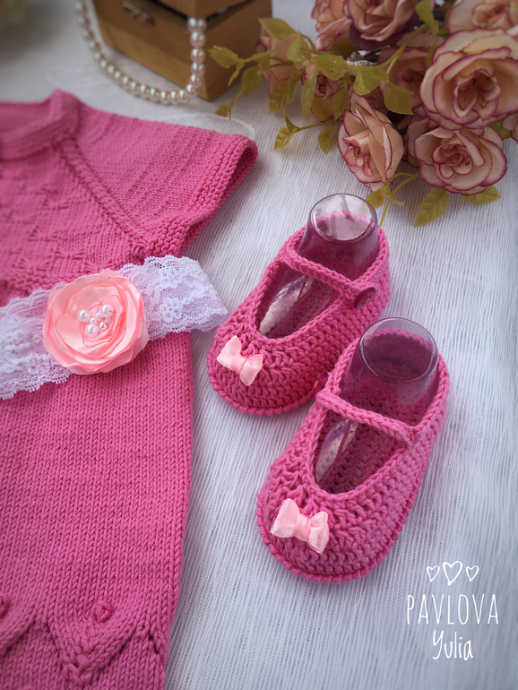 Комплект: платье, пинетки и повязка на голову