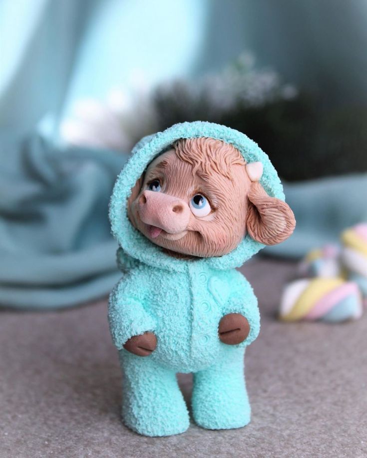 Ну и тематические, которые скоро будут очень актуальными: это фигурки быков из полимерной глины.
