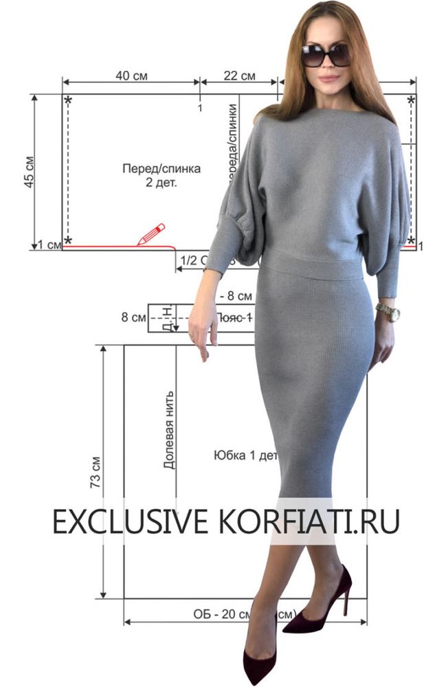 Сегодня мы хотим предложить вам особенную модель, которую можно не только сшить из готового материала, но и связать. Невероятно эффектный костюм состоит из джемпера и юбки. Объемный верх и облегающий низ - прекрасная коллаборация двух абсолютно самостоятельных вещей. Вместе они создают цельный ансамбль, однако, каждая из них может выступать и отдельно, в качестве комби-партнера с другими изделиями вашего гардероба. Например, такую трикотажную юбку можно прекрасно сочетать со свободной блузкой, а джемпер - с джинсовыми брюками.