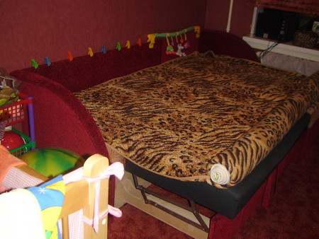 это большой плед, он оказался шире дивана именно настолько, чтобы закрутить его одним концом скрученное одеяло:) он зашит и поэтому ему не надо крепиться, просто лежит зашитый, как валик с краю. То есть берете продольный край пледа и делаете шов внутри когда уже намотаете на скрученное одеяло)) Ну можно конечно и к кровати пришить прочным швом, это совсем уж как настоящий валик получится=)